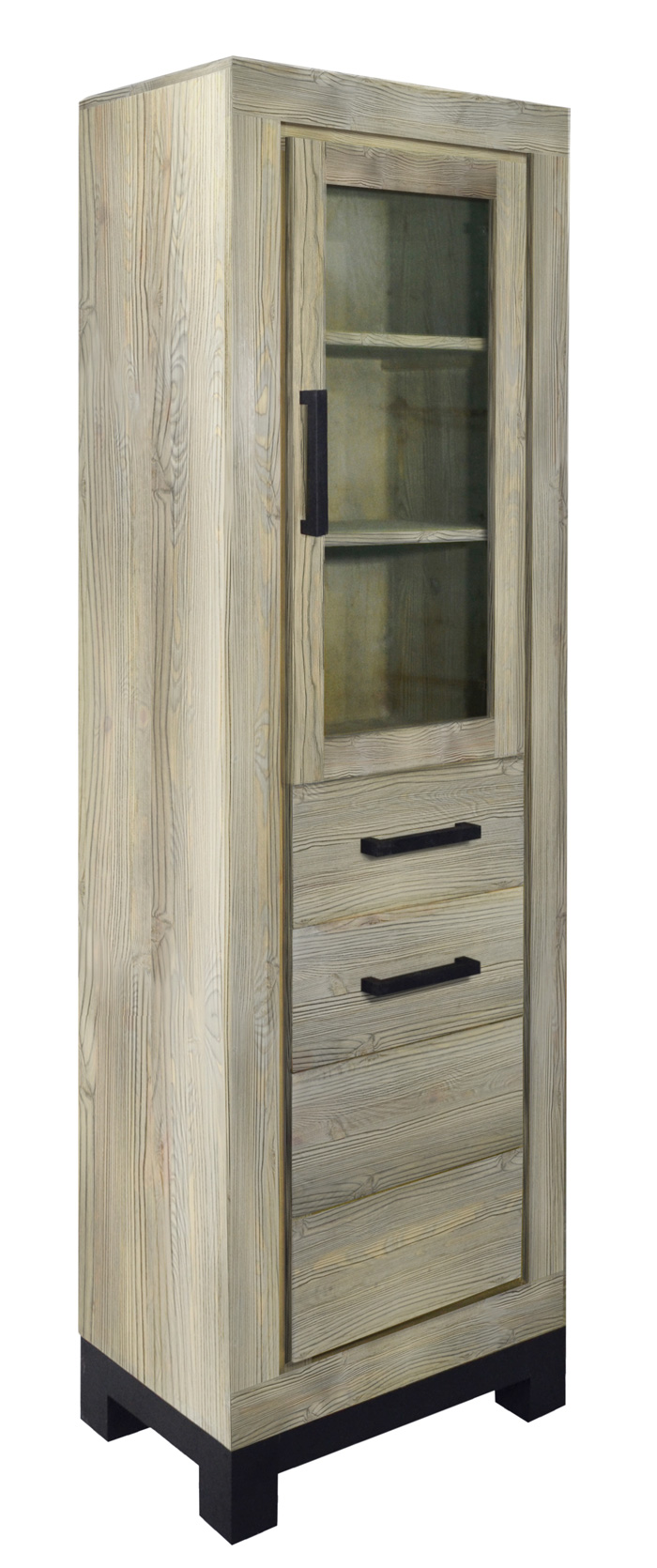 В соответствии со стилем ЛОФТ в буфете TEMPO BLACK КМБ-111 не используется излишний декор. Главное – подчеркнуть красоту древесины. Выполнен из 100 % массива сосны. Имеет две двери, за которыми находятся ниши с полками, одна из них стеклянная – за ней можно разместить приятные глазу мелочи от сервизов до фотографий и при этом уберечь их от пыли. Между дверями встроен один выдвижной ящик.