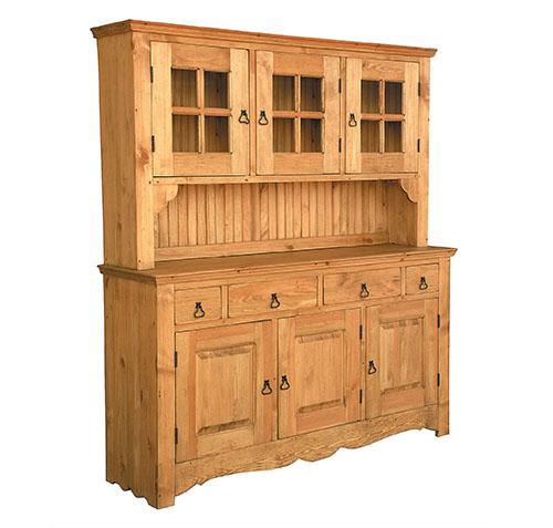 Буфет Волшебная сосна REHAUSSE 180 (RE180+EN180) выполнен из массива сосны, обладает легким ароматом смолы. Состоит из верха RE 180 и низа EN 180. Вес изделия 147 кг. Верх - три стеклянные дверцы, Низ - четыре выдвижных ящика на деревянных полозках и три дверцы за которыми полка на всю длину тумбы. Комплектуется металлическими ручками "груши" (10шт.). Тон мебели может отличатся от фотографии на сайте. При желании можно приобрести кованные металлические ручки в форме кольца или груши.