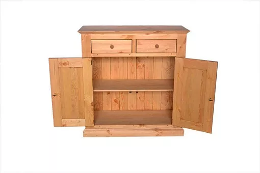 Тумба дверная EL 95 В выполнена из массива сосны, обладает легким ароматом смолы. Поставляется в собранном виде. Вес изделия 51 кг. За дверьми полка на всю длину тумбы Комплектуется металлическими ручками "груши" (4шт.). Тон мебели может отличатся от фотографии на сайте. При желании можно приобрести кованные металлические ручки в форме кольца или груши.