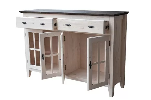 Мебель серии Калифорния изготовлена из натурального массива сосны. Тумба имеет два выдвижных ящика и четыре стеклянных дверцы. Изготавливается в 7 различных цветах: дуб, махагон, зелёный,африканский венге, прованс (серый), маренго светлый, палисандр. Тон мебели может отличатся от фотографии на сайте.