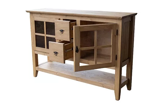Мебель серии Калифорния изготовлена из натурального массива сосны. Тумба имеет два выдвижных ящика по центру, две дверцы с стеклом по бокам и в нижней части открытую полку по все длине тумбы. Изготавливается в 7 различных цветах: дуб, махагон, зелёный,африканский венге, прованс (серый), маренго светлый, палисандр. Тон мебели может отличатся от фотографии на сайте.