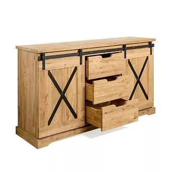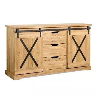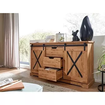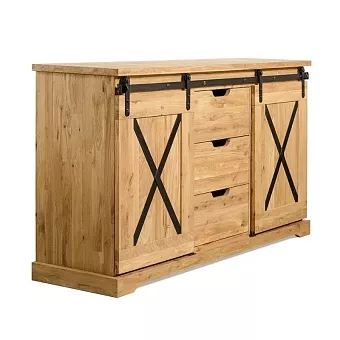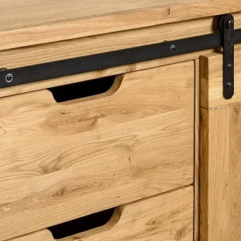 Серия Рэйлвэй выполнена в стиле кантри из массива дуба (дикий). Поступает в собранном виде. Каркас, фасад- массив дуб (дикий). Задняя стенка, дно ящиков - фанера, облицованная шпоном дуба. Фурнитурв: направляющие скрытого монтажа с доводчиками, система раздижных дверей LOFT. Вес изделия 86,9 кг. Фотографии на сайте могут не передавать точный тон мебели, узнавайте у менеджеров.