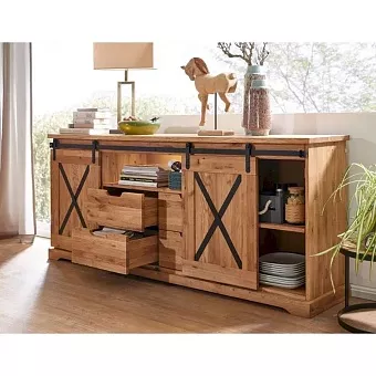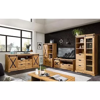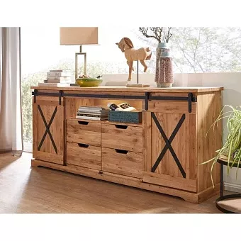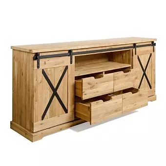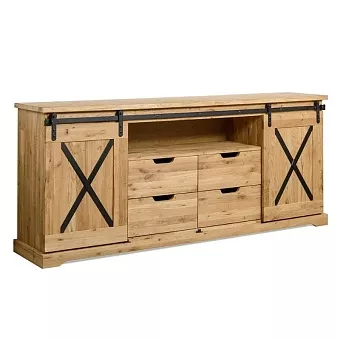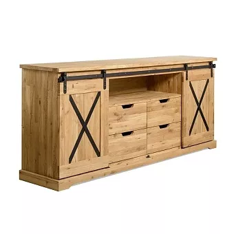 Серия Рэйлвэй выполнена в стиле кантри из массива дуба (дикий). Поступает в собранном виде. Каркас, фасад- массив дуб (дикий). Задняя стенка, дно ящиков - фанера, облицованная шпоном дуба. Фурнитурв: направляющие скрытого монтажа с доводчиками, система раздижных дверей LOFT. Вес изделия 114,4 кг. Фотографии на сайте могут не передавать точный тон мебели, узнавайте у менеджеров.
