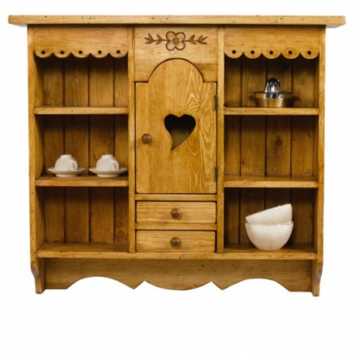 Шкаф настенный ETAC 12 выполнен из массива сосны, обладает легким ароматом смолы. Поставляется в собранном виде. Вес изделия 20 кг. Имеет два выдвижных ящика и дверку. Ручки деревянные "Грибочек" (2 шт.). Тон мебели может отличатся от фотографии на сайте. При желании можно приобрести кованные металлические ручки в форме кольца или груши.