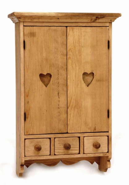 Шкаф навесной MEGEVE 2 двери 3 ящика выполнен из массива сосны, обладает легким ароматом смолы. Поставляется в собранном виде. Вес изделия 19 кг. Имеет три выдвижных ящика и две дверцы. Ручки деревянные "Грибочек" (3 шт.). Тон мебели может отличатся от фотографии на сайте. При желании можно приобрести кованные металлические ручки в форме кольца или груши.