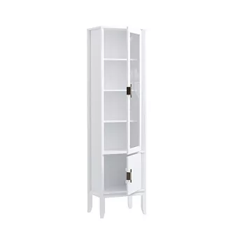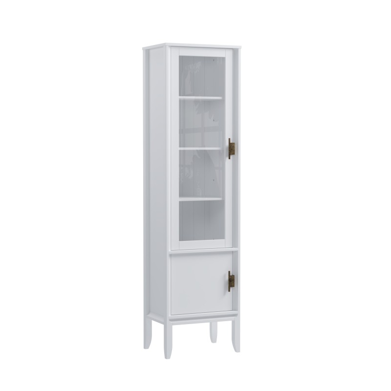 Шкаф для посуды Бридж узкий с 1-ой стеклянной дверью и 1 глухой дверью белый лак