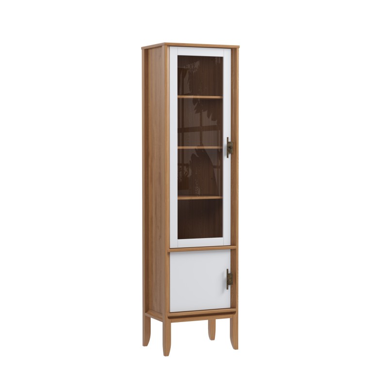 - Артикул Шкаф для посуды Бридж узкий с 1-ой стеклянной дверью и 1 глухой дверью браун/белый лак