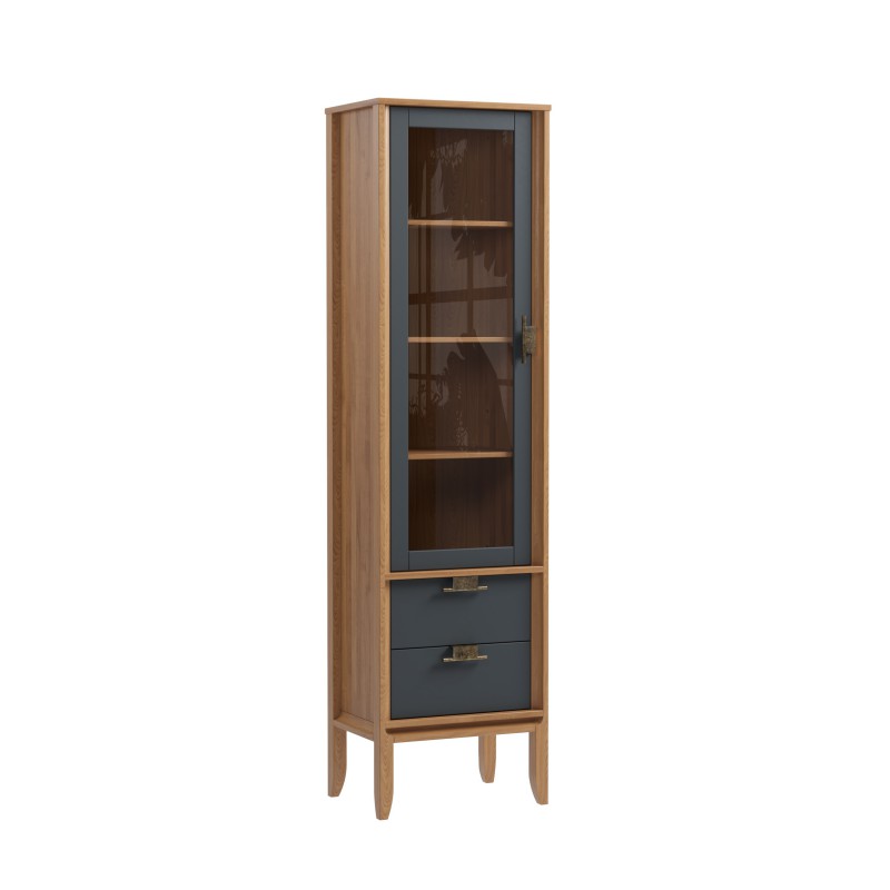 Шкаф для посуды Бридж узкий с 1-ой стеклянной дверью и 2-мя ящиками браун/серый 7012