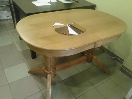 Стол обеденный Пан раздвижной. Отличное решение для гостиных и столовых. ножки – массив ольхи, столешница – МДФ, облицованная натуральным шпоном дуба, с профильной обкладкой по контуру из массива ольхи и облицовывается двумя слоями шпона дуба. Для создания защитно-декоративного покрытия применяется лакокрасочная продукция немецких и итальянских производителей. Раздвижная система укомплектовывается импортной фурнитурой.