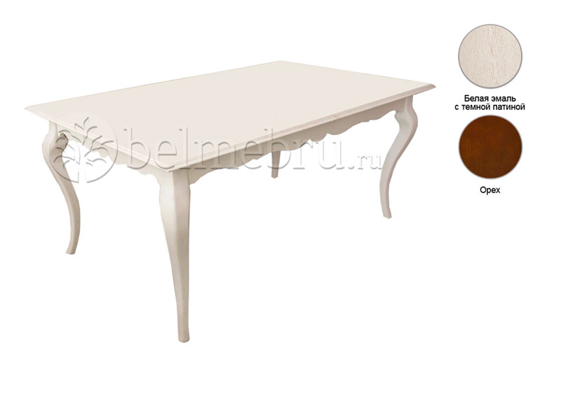 Отделка: варианты цвета — «орех» , «белая эмаль + патина тёмная», «венге+патина серебряная», лак – на водной основе. Вес изделия 102 кг.