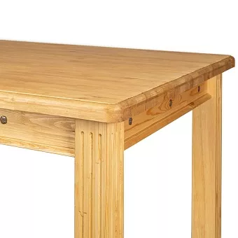 Как вы думаете, сколько, как минимум, может стоить самый дорогой в мире стол? Две тысячи долларов, три или, возможно, пять? На самом деле стоимость самого дорогого на Земле стола начинается от 370 долларов, и это всего за 10 квадратных сантиметров. В данном случае речь идет о столе, который выполнен из такого нетривиального материала, как лавовый камень, щедро покрытого сверху особой защитной эмалью… Понятно, что такой обеденный стол может позволить себе приобрести далеко не каждый современный россиянин, особенно с учетом того, что на каждого человека за обеденным столом должно приходиться от 60-70 сантиметров места, а покупать подобный предмет мебели нужно, как минимум, на 4-х персон. Понимая это, мы спешим предложить вам не менее эффектный, но более доступный стол из коллекции Викинг, выполненный в деревенском стиле кантри. Также нужно отметить, что стол этот изготовлен из натуральной древесины сосны. Полезный совет: Лакированные балясины мебели из натуральной древесины протирать стоит салфеткой, слегка смоченной в растворе для стирки деликатных тканей. Затем обязательно вытрите поверхности досуха.