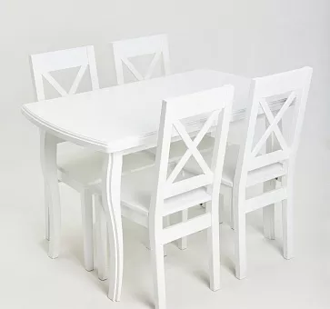 также 4 цвета нитролаковой покраски: бесцветный натуральный тон, шоколад, орех, венге.В коллекции представлены обеденные столы: прямоугольные, круглые раздвижные и нераздвижные компатных и больших размеров.