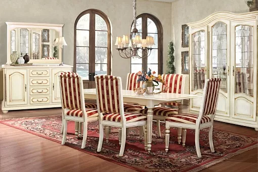 Отделка: варианты цвета «Медовый дуб + з.п.», «Белая эмаль», «Белая эмаль с золотой патиной», лак – на водной основе.