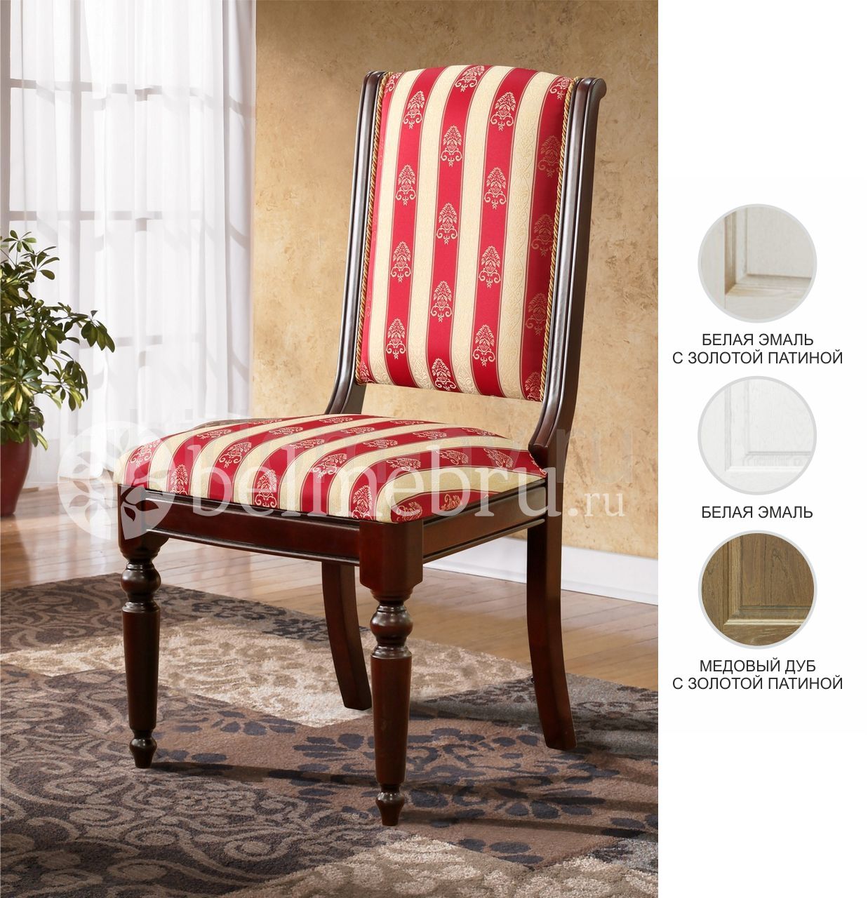 Отделка: варианты цвета «Медовый дуб + з.п.», «Белая эмаль», «Белая эмаль с золотой патиной», лак – на водной основе.