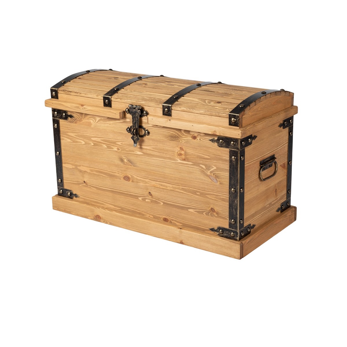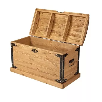 Серия мебели Викинг подарит неотъемлемую теплоту и уют в ваш дом. Вся серия выполнена из массива сосны. Вся мебель экологически чистая, безопасная и имеет соответствующие сертификаты качества. Сундук Викинг Самые древние сундуки, которые сохранились и до наших дней, созданы были еще в Древнем Египте. Несколько позже, уже в Древнем Риме, умельцы научились изготавливать эту мебель, так называемой рамочно-филёнчатой конструкции. А вот в Европу сундуки пришли гораздо позже - произошло это в эпоху Средневековья. Такие же предметы мебели использовались в это время и в Китае, а в России они вообще долгое время были одним из самых популярных и востребованных. К сожалению, сундуки в виде предметов мебели не использовались уже несколько последних десятилетий, но сегодня мода на подобные изделия, вместе с модой на деревенский стиль кантри, распространяется все стремительнее. Лишь некоторые мебельные фабрики предлагают сегодня своим клиентам, приобрести сундуки. Приятным исключением является мебель серии Викинг. Предлагаемый деревянный сундук из упомянутой серии выполнен в стиле кантри из соснового массива, искусственно состаренного экологически чистым пчелиным воском. Полезный совет: Для удаления с поверхности сосновой мебели мелких царапин, а также возвращения ей былого цвета, стоит использовать особые восковые кубики, которые можно купить в мебельных магазинах.