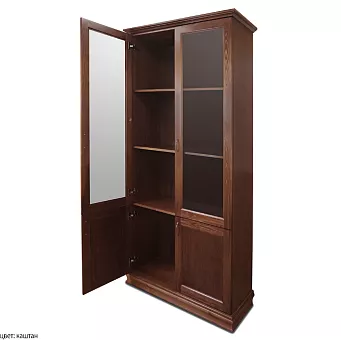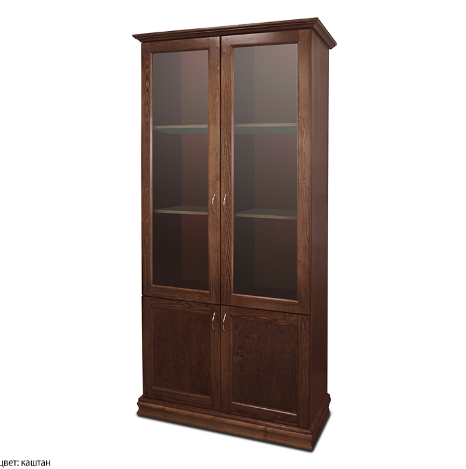 Библиотека "Марк 4.0" состоит из двух шкафов со стеклянными дверями. Наличие 2-х полок в каждом шкафу обеспечивает возможность размещения большого количества книг. Классический стиль библиотеки удачно дополнит Ваш кабинет или гостиную.