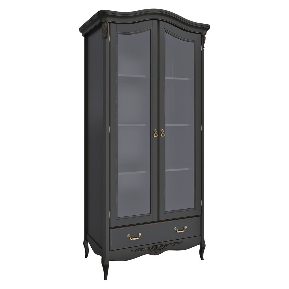 Элегантный книжный шкаф станет настоящим украшением рабочего кабинета или домашней библиотеки. Черные с благородным старением поверхности фасада украшают эффектные стеклянные вставки и стильная фурнитура. Дверцы распашного типа скрывают просторные полки для книг. В нижнем выдвижном отсеке можно хранить газеты, журналы или альбом с фотографиями. Требуется сборка. Количество мест указано в свойствах товара.