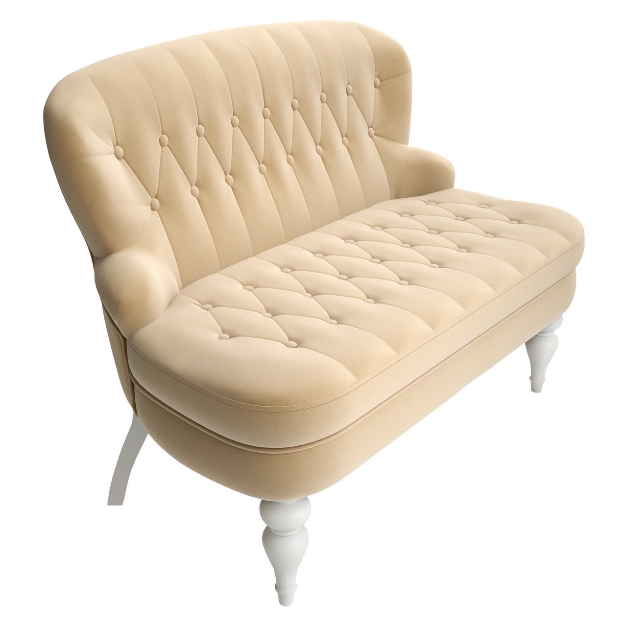 Диван канапе, выполненный в стиле Прованс, имеет эргономичную форму спинки для максимального комфорта. Оригинальности модели придает технология обивки с тяжкой, которая делает форму сиденья и спинки более изысканной. Обивка из микровельвета прекрасно сочетается с изящными ножками из натуральной древесины. Сборка не требуется.