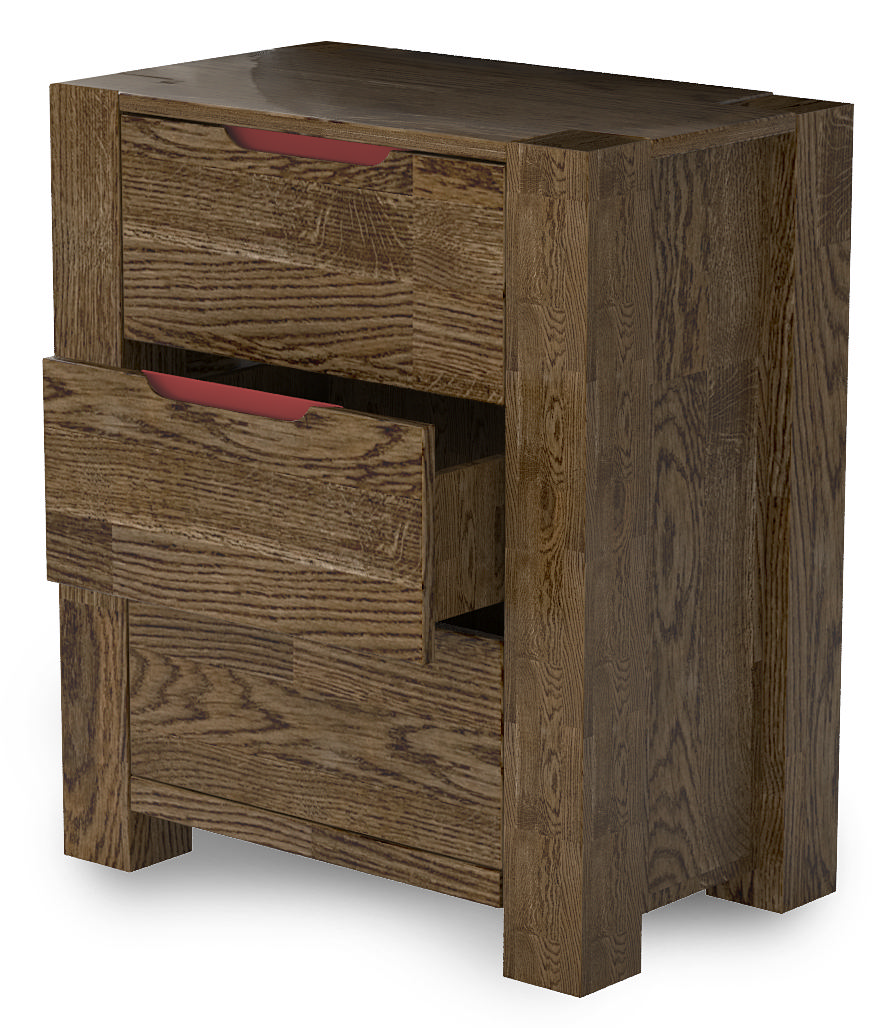 Комод 3-ящика Riva цвет Графит это элитная мебель для интерьера в стиле лофт. Обработка втиранием натуральным тиковым маслом. Которое защищает поверхность древисины от гниения и внешних воздействий но а тоже время не скрывает всю красоту рисунка дерева.Выполнен из цельно ламельного дубового щита. Фурнитура направляющие европейского производства Hettich.Направляющие снабжены доводчиком и механизмом бесшумного открытия и закрытия. Дубовый щит сочетает в себе различные цветовые оттенки дерева а так же красивые переходы и естественные затемнения и текстуры. Присутсвуют сучки и трещинки не влияющие на технические характеристики используемой мебели а так же шашель на частичных поверхностях.