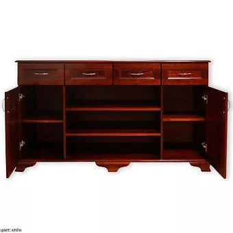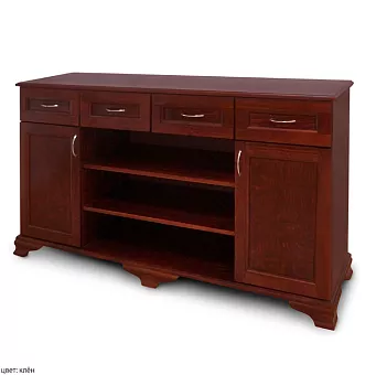 Комод "Майорита 2.4". Фасады выдвижных ящиков выполняются с имитацией филёнки фигурной фрезой и металлическими ручками. Особенность этого комода - фигурная фаска по верхнему периметру и отсутствие открытой ниши. Сочетание натуральной древесины и современных эколаков - залог экологичности и безопасности мебели для дома.