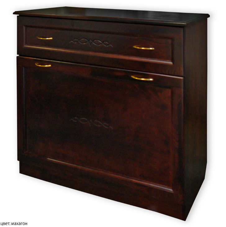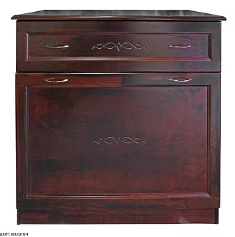 Деревянный комод "Веркара 0.2" изготавливается из мебельного клеёного щита массива натуального дерева, корпуса ящиков из берёзовой мебельной фанеры толщиной 12 мм, а дно ящика и задняя стенка комода из ДВП. Фасады ящиков с филёнками из мебельной берёзовой фанеры с рельефым криволинейным орнаментом, который выделен тёмным тоном. Столешница комода имеет фигурную фаску по верхнему периметру. Сочетание натуральной древесины и современных эколаков - залог экологичности и безопасности мебели для дома.
