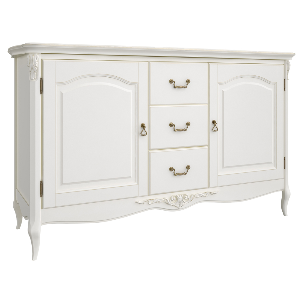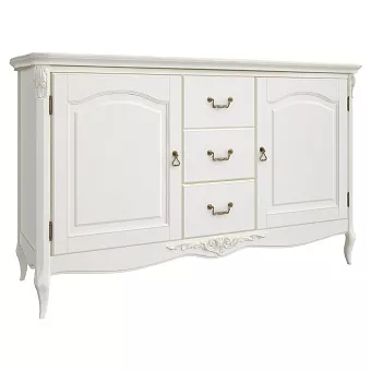 Роскошный креденс, выполненный в стиле французской деревенской классики, способен стать настоящим украшением спальни или гостиной. Плавные очертания фасадов и точеных ножек удачно перекликаются со строгой геометрией корпуса, придавая креденсу изысканность и роскошь. Массив бука, используемый при изготовлении этого предмета мебели, отличается мягкой равномерной фактурой, которая идеально подходит для мебели в классическом стиле. Сборка не требуется.