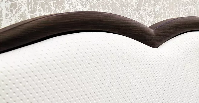 Мягкое изголовье изготовлено из экокожи белого цвета. можно установить подьемный ящик для белья
