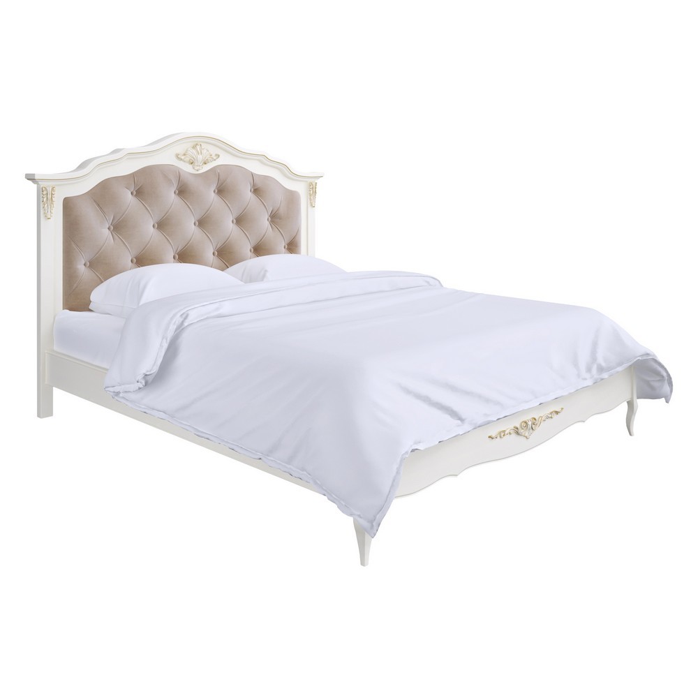 Необычайно привлекательная кровать станет настоящим украшением элегантного стиля ампир, шебби-шик или прованс. Мягкие поверхности высокого изголовья декорированы каретной стяжкой. Благородный оттенок слоновой кости органично сочетается с позолоченными декоративными элементами, позволяя воссоздать в спальной комнате богатый интерьер старинного замка. Требуется сборка.