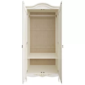Платяной двухстворчатый шкаф отлично дополнит интерьер прихожей, гостиной или спальни в стиле французской классики. Изысканный внешний вид дополнен роскошными элементами декора, а основной цвет «слоновая кость» отлично сочетается с золотом. Внутри есть штанга для хранения верхней одежды и просторное отделение для обуви. Массив бука, из которого изготовлен шкаф, является гарантией длительного срока службы мебели. Возможно изменение внутреннего наполнения. Требуется сборка.