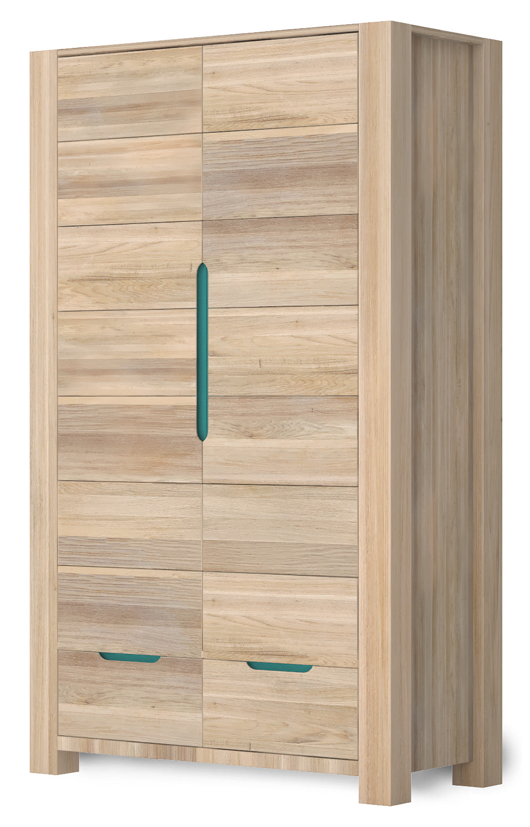 Шкаф 2-х дверный Riva цвет Бланш это элитная мебель для интерьера в стиле лофт. Обработка втиранием натуральным тиковым маслом. Которое защищает поверхность древисины от гниения и внешних воздействий но а тоже время не скрывает всю красоту рисунка дерева.Выполнен из цельно ламельного дубового щита. Фурнитура направляющие европейского производства Hettich.Направляющие снабжены доводчиком и механизмом бесшумного открытия и закрытия. Полки в узком отделении переставляются на разные уровни. Над штангой в большом отделении есть полка для шляп. Дубовый щит сочетает в себе различные цветовые оттенки дерева а так же красивые переходы и естественные затемнения и текстуры. Присутсвуют сучки и трещинки не влияющие на технические характеристики используемой мебели а так же шашель на частичных поверхностях.