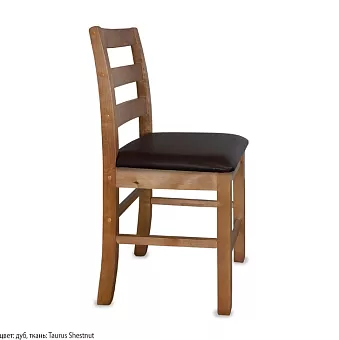 Деревянный стул "Элис" - это новинка от ВМК-Шале, модель разработана в 2017 году. Для производства используется массив клеёного дерева Класса А. У стула прямоугольные выгнутые ножки, которые с низу фиксируются между собой проножками. Проножки делают каркас стула крепким, и не позволяют ножкам расшатываться.