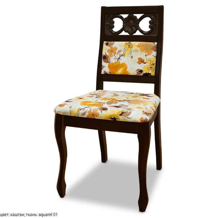 Стул "Флауэрс" из массива березы по праву можно назвать одним из самых эффектных из все коллекции ВМК-Шале. Кроме того он очень удобен тем, что на его спинке на уровне поясницы мягкая вставка. А на верху спинки располагается фигурная резьба в виде ажурных цветов.
