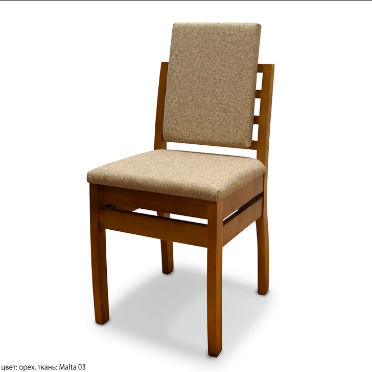 Стул "Соверен" изготавливается из массива березы с относительной влажностью после сушки 8-10%. Модель оригинального минималистичного дизайна. Мягкие вставки на сидении и спинке позволяют устроиться на стуле как в полноценном кресле. При заготовке деталей материал проходит тщательный контроль качества, материал с чёрными сучками отсеивается. При склеивании деталей используется итальянский ПВА клей, осуществляется подбор материала по текстуре. Изделие проходят лакирование в малярной камере в разобранном виде.