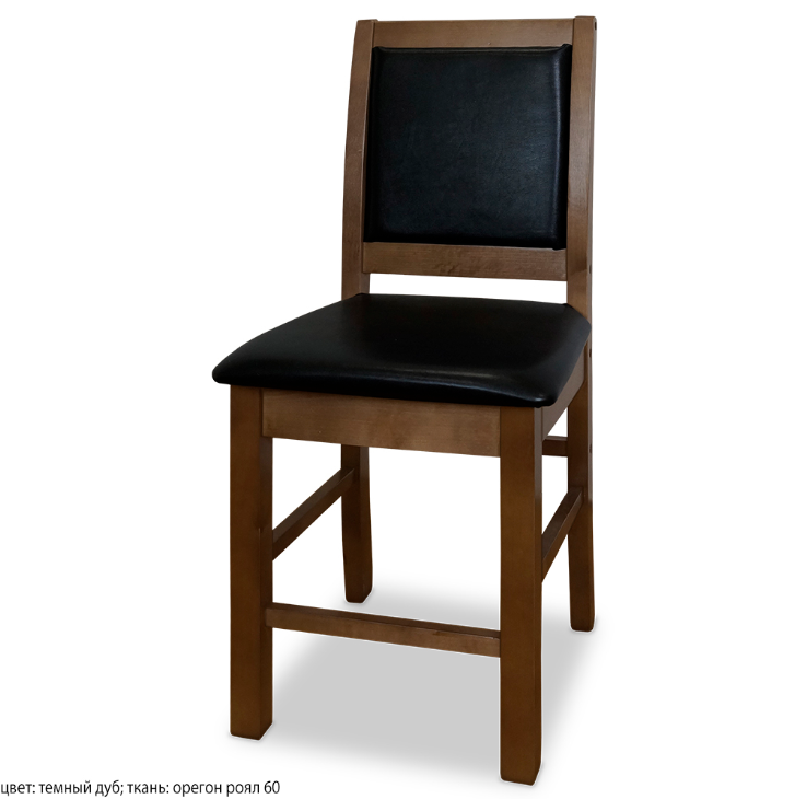 Деревянный стул "Стэнли" имеет классическую форму. Модель с прямоугольными ножками в сечении. Задние ножки чуть изогнуты. Сидение и спинка с мягкой обивкой. При изготовлении используется массив дерева класса А. Покрывается итальянским полиуретановым лаком в 3 слоя. Есть 4 проножки, соединяющие ножки между собой. Это добавляет жёсткости изделию.
