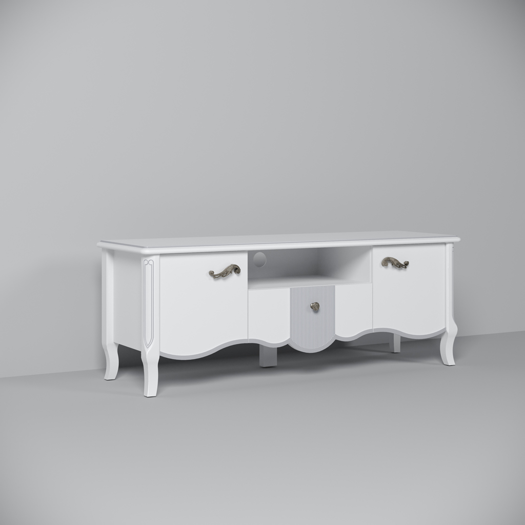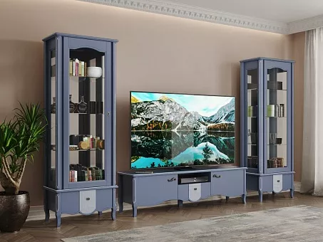 Набор выполнен с использованием шпона и массива дуба на лицевых поверхностях. Украшают набор: фигурный набор шпона, декоративные элементы с выдавленными полосками, подчёркивающими структуру древесины, волнообразные кромки нижних деталей, объёдиняющие все изделия в единую композицию. Зеркало навесное овальной формы прекрасно сочетается с таким же по конфигурации на шкафу. Внутренние поверхности деталей облицованы плёнкой с финиш-эффектом. Крышки из плиты ДСП, облицованной шпоном и бруском дуба с профильным фрезерованием по лицевым кромкам.