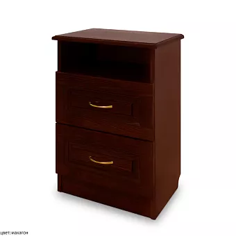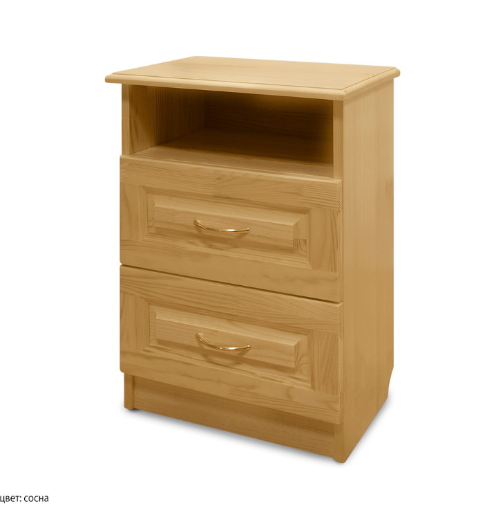 Деревянная прикроватная тумба "Авангард 0.2". Особенность этой тумбочки - открытая верхняя ниша и фигурная фаска по верхнему периметру. Сочетание натуральной древесины и современных эколаков - залог экологичности и безопасности мебели для дома.