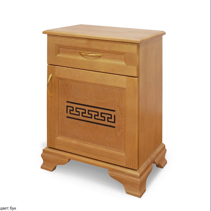 Деревянная прикроватная тумба "Авизия 1.1". Отличное дополнение к кровати "Авизия". Особенность этой тумбочки - фигурная фаска по верхнему периметру и отсутствие открытой ниши. Сочетание натуральной древесины и современных эколаков - залог экологичности и безопасности мебели для дома. Возможно изготовление нестандартных размеров.