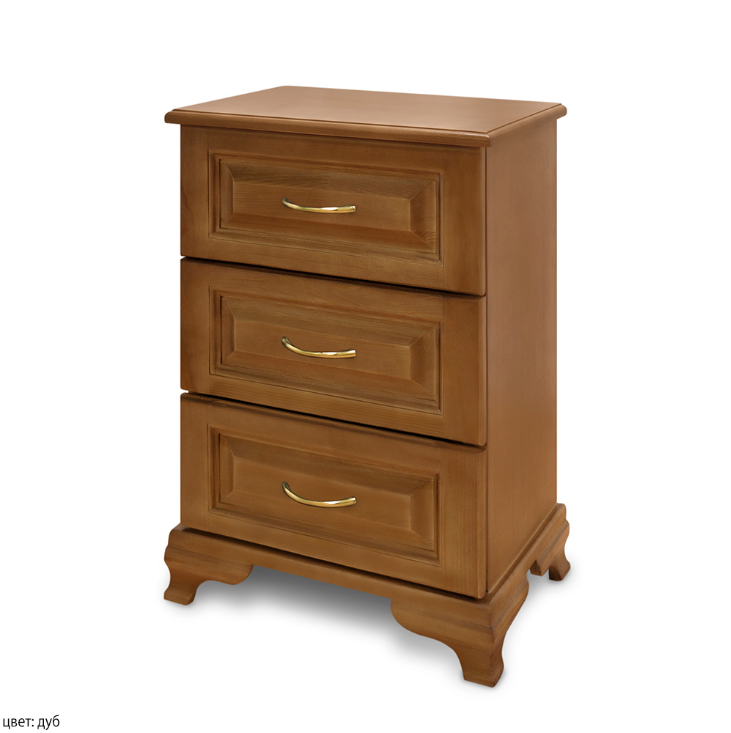 Деревянная прикроватная тумба "Бажена 0.3". Отличное дополнение к кровати "Бажена". Фасады выдвижных ящиков выполняются с фигурными филёнками и металлическими ручками. Особенность этой тумбочки - фигурная фаска по верхнему периметру и отсутствие открытой ниши. Сочетание натуральной древесины и современных эколаков - залог экологичности и безопасности мебели для дома. Возможно изготовление нестандартных размеров.