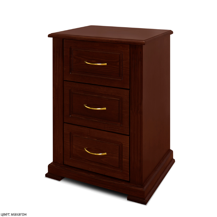 Деревянная прикроватная тумба "Классика 0.3". Тут название говорит само за себя - класическая мождель тумбы без лишних деталей. Фасады выдвижных ящиков выполняются с филёнками из берёзовой мебельной фанеры и металлическими ручками. Особенность этой тумбочки - фигурная фаска по верхнему периметру и отсутствие открытой ниши. Сочетание натуральной древесины и современных эколаков - залог экологичности и безопасности мебели для дома. Возможно изготовление нестандартных размеров.