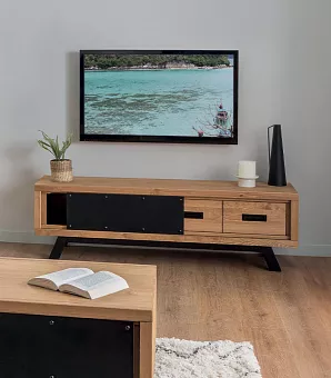 Коллекция "Оникс" в "Лофт" стиле с элементами металла. Покрытие - бейц цвета антик и масло. Ножки из дерева покрыты черной эмалью и лаком. Накладные элементы на сдвижных дверках из металла. Ручки врезные черные из металла. Tумба ТВ 180 Оникс: 1 сдвижная дверца на роликах, один видвижной ящик на шариковых направляющих полного выката.