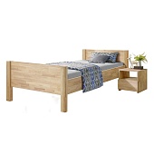 Главное в спальне – это кровать, которая должна быть большой и удобной, наподобие кровати «Алеся» из нашего каталога. Эта кровать с настилом выполнена в эко-стиле, идеально сочетающимся с массивом дуба.
